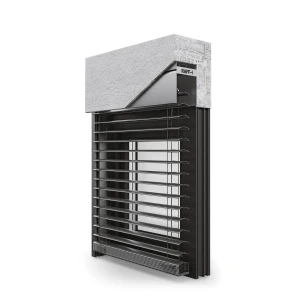 RAFF-i to nowoczesny system ze skrzynką aluminiową – nadprożową. Ze skrzynki wystają specjalne trzpienie, które wystarczy wsunąć w zamontowane uprzednio prowadnice, dzięki czemu montaż całego systemu jest prosty i bardzo szybki.