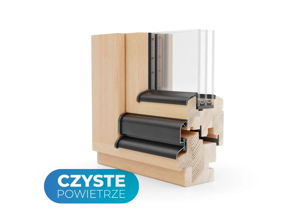 Prezentowane okna tworzone są w oparciu o etycznie pozyskiwany surowiec, który podlega specjalnej obróbce poprawiającej jego parametry. Do tworzenia profili używane jest drewno klejone z kilku warstw dla uzyskania lepszych parametrów statycznych i podniesienia jego trwałości.